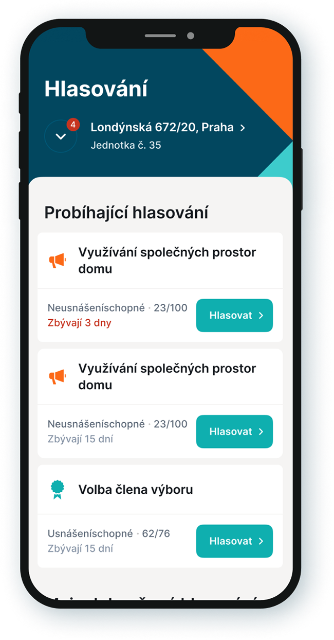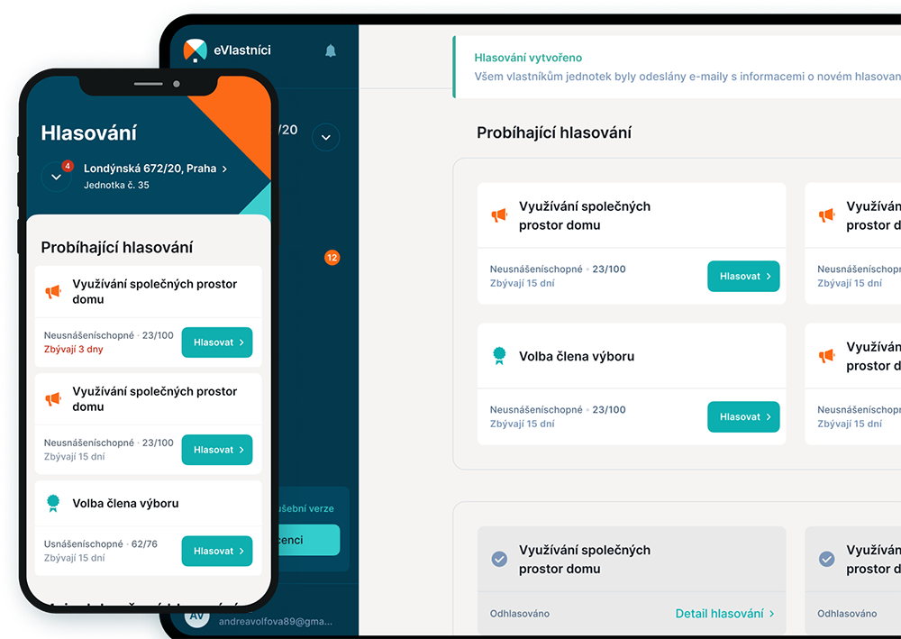 Konečně je tu platforma pro pohodlné online hlasování SVJ na úrovni. Bez překřikování, zdržování a zbytečných nervů. Každý se o hlasování včas dozví a každý může hlasovat, jak je to pro něj pohodlnější - na počítači nebo přes aplikaci v telefonu.
